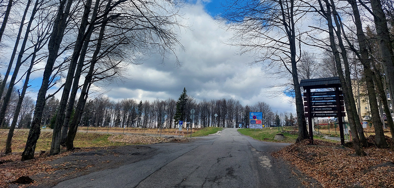 Tabuľou „Skalka“ stúpanie nekončí, je to len oznam, že sa ide do finále, ešte necelý kilometer. Znovu sa to začína dvíhať, les sa rozostúpi a cesta prechádza cez parkoviská.