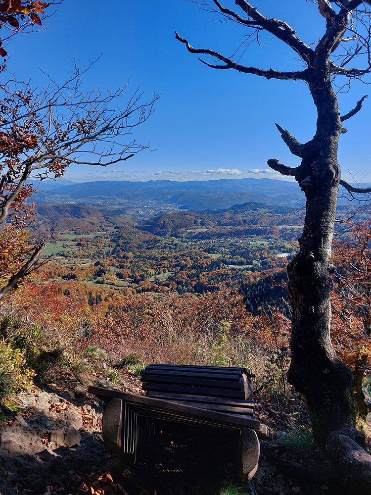 Potom smerom hore na hrebeň krátky a strmý choďák, dobrý na zmenu stereotypu. Zopár kratších chodeckých miest je samozrejme aj na hrebeni, až po Flochovú, pomedzi ne plno pekných lokalít, ako bralká pri chodníku, vyhliadky na Bystricu, samotný tunel a tak... A konečne slnko do chrbta, lebo také októbrovo nízke v tej prvej časti trochu otravovalo :-)
