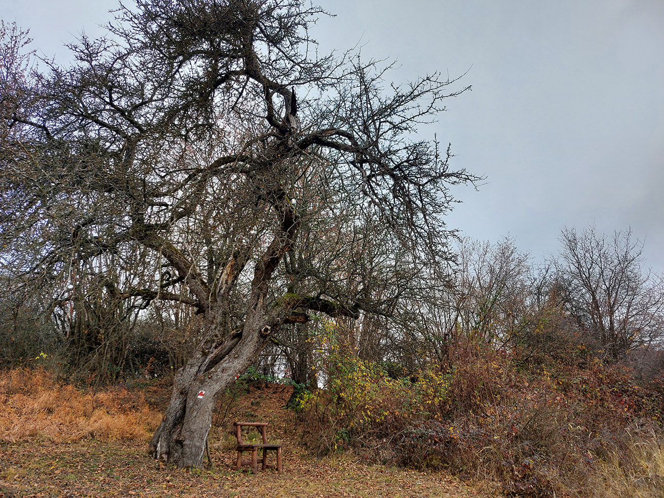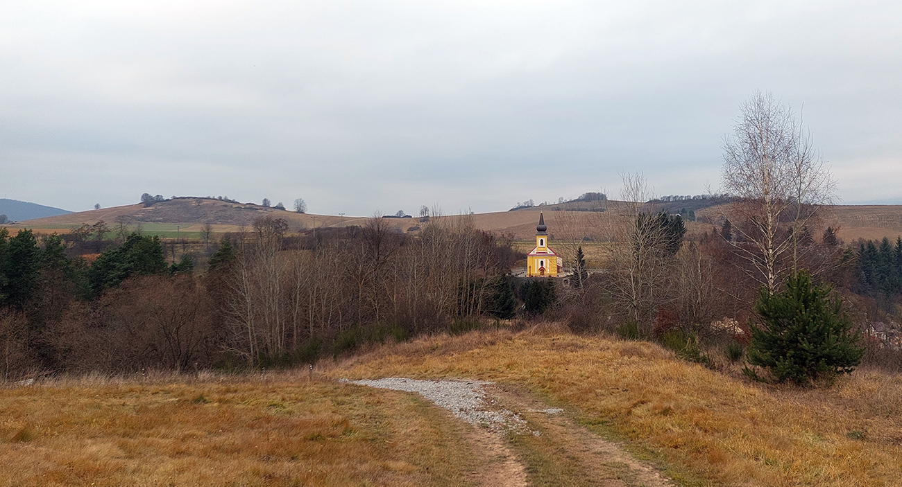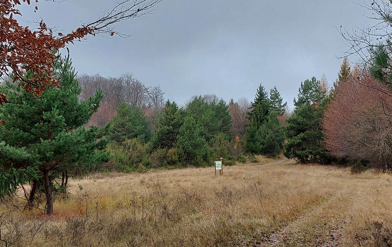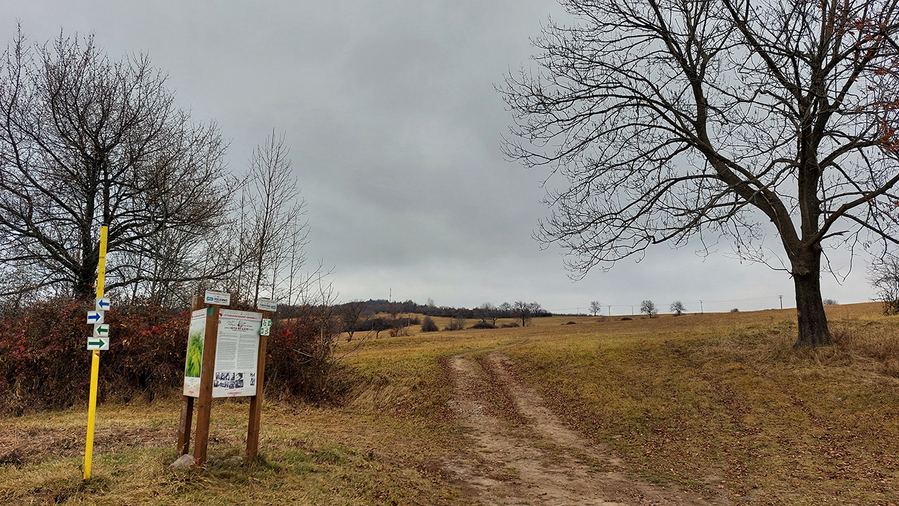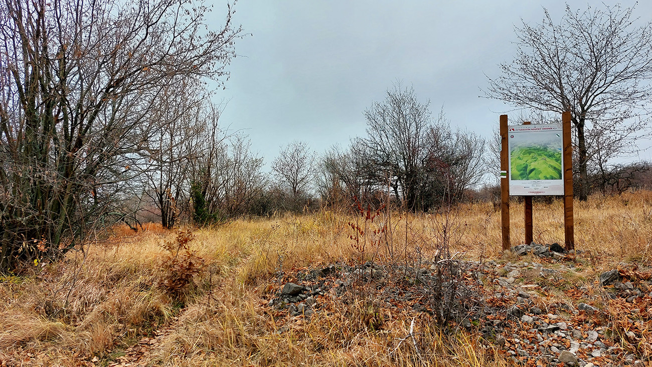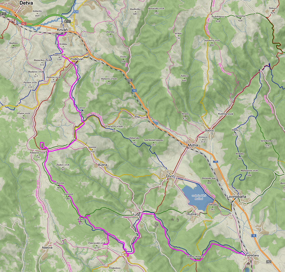 Toto dnes bude taká vlastivedno-bežecká turistika. Že divná kombinácia? Nooo, keď bolo sivo, škaredo, na horách dupľom hnusné počasie (aj keď Tatrancom sa just vyčasilo) a jesenné farbičky už zotrel neskorý november, ťahalo ma to uchýliť sa do nižších polôh, nie až tak navštevovaných a v lete príliš teplých. Veľa pekných miest sa dá poobzerať v Timravinom kraji, v srdci sopečného pohoria Ostrôžky. Len sú od seba často vzdialené na pešie presuny. Ale jemným hopsoklusom sa to dá - zvlášť keď pod nohami dominujú mäkkým lístím vystlané lesné cesty - alebo v druhej polovici podpolianske pasienky. Takže Podrečany – Tuhár – Polichno – Budinské lazy – Javor – Podkriváň – Kriváň, necelých 40 km vraj, podľa mapy. Ale aj pár zachádzok „od priamej línie“ som si dal, tu je to fialovou na farebnom (https://sk.mapy.cz/turisticka):
