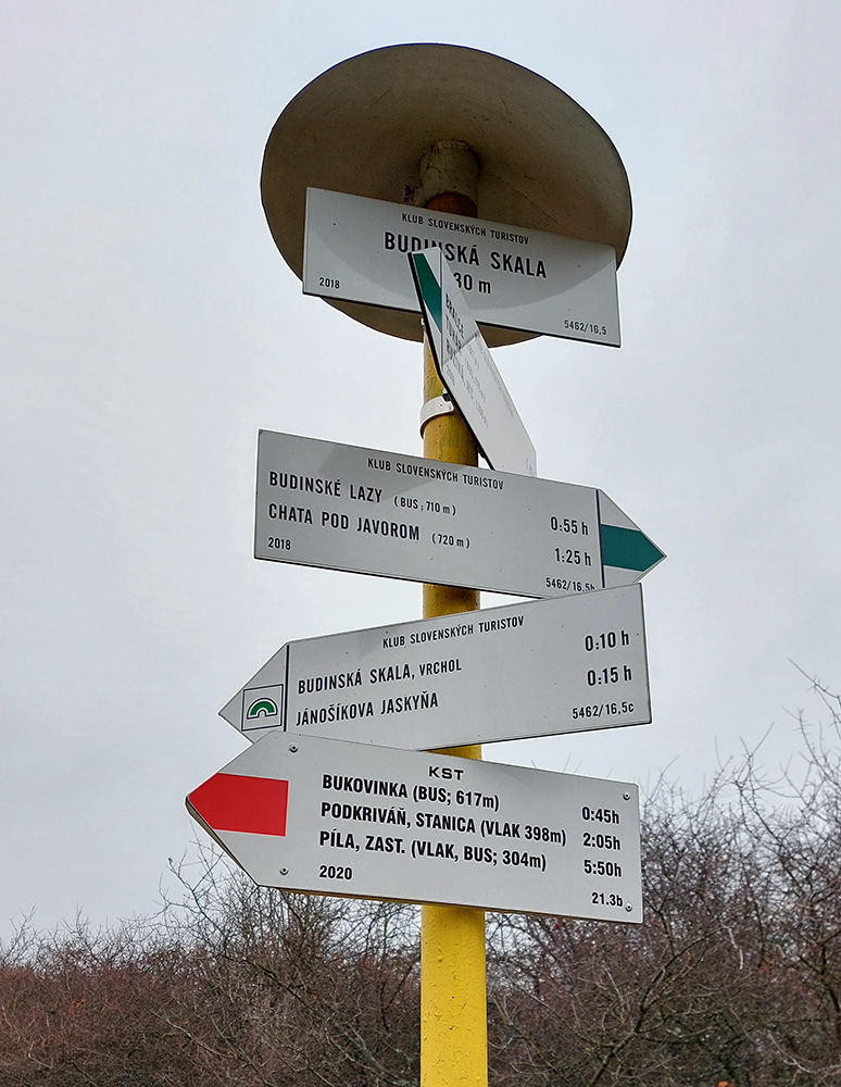 Von z lesa, a už sú všade naokolo lesy elektrických oplôtkov a po stráňach porozhadzované hospodárstva – samoty. Vbehol som do typickej podpolianskej lazovej krajiny. Najprv mám pod nohami lúčne cesty, no potom v lese zákerné kamene, kryté lístím. Ale to už obchádzam zdola Budinskú skalu s ďalšou jaskyňou (tentokrát Jánošíkovou, ako inak). Zhora sú tie bralá pekné, ale výhľady žiadne - treba ísť dole pod ne, to je iná paráda!