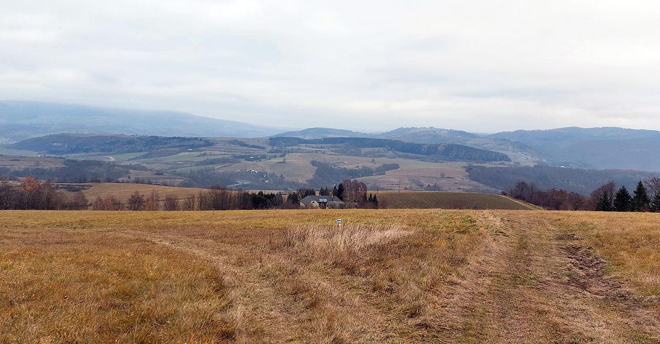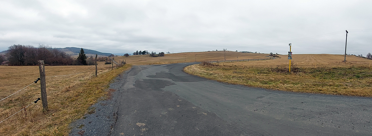 No dobre, dáke kravky tam síce postávali aj s teľatami, ale nechceli ma zožrať :-) Prudko z kopca do Podkriváňa, stále cez hrboľaté pasienky. Potom kúsok šotolinovej chotárnej cesty a zase pasienky – a to už dole svieti žltý kostol. Popri ňom sa len prešmyknem a keďže mám ešte tak akurát času, dávam to ešte cez cestu a popri futbalovom ihrisku až do Kriváňa. Stále po pekných lúkach a čiastočne aj popri poliach – už som presa len nízko. Doteraz to bolo všetko super značené, len táto záverečná žltá spojka je trochu problematická - ale s mapou v ruke/mobile je všetko jasné, krajina je tu čitateľná. Na horizonte božia muka, a potom už len smerovník, odbočka na modrú a davaaaaj dole do náručia civilizácie, v ústrety hluku z hlavnej cesty. Šťastne dobojované!