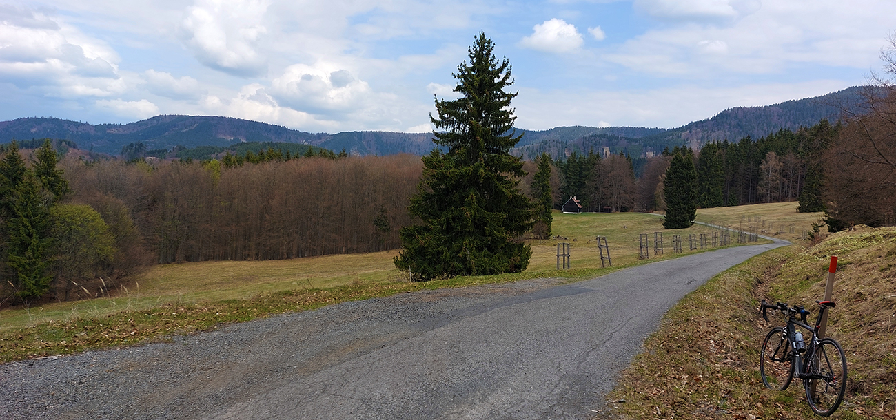 Aj som dúfal, že sa to okolo obory pod Pajtou trochu položí, ale naopak - ešte sa to miestami aj viac dvihlo. Potom nad oborou, za križovatkou, začal byť posyp pekne rovnomerne rozložený na celej ceste, že miestami až koleso podšmyklo. Tak pekne sadnúť a dupať – tu už menej áut chodí. Ale žiadna tragédia, nohy zatiaľ stíhali, aj kus nového koberca pomohol a už to nebolo ďaleko. Lebo les stmavol smrekmi a do čvirikotu sa zamiešali aj zbíjačky miestnych ďatľov. Rampa bola otvorená.