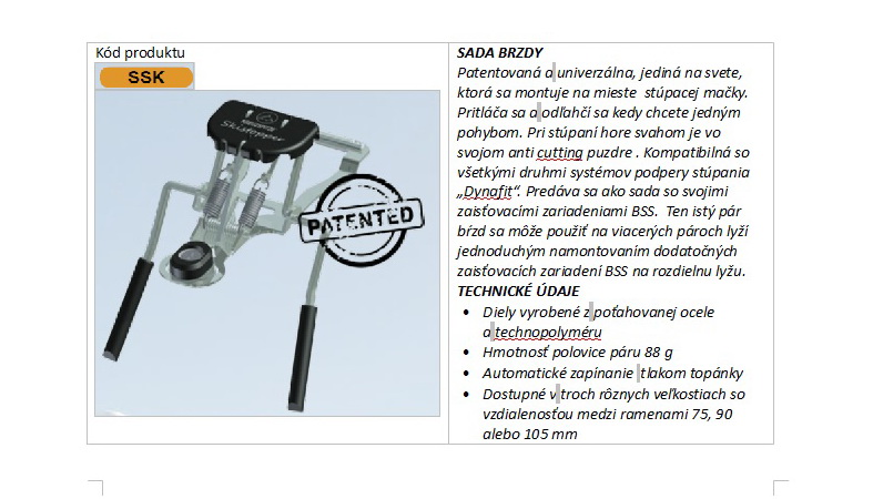 V katalógu ich výrobkov dominujú pretekové viazania vyrobené tými najmodernejšími techológiami. Špecialita na ktorú má Kreuzspitze patent je určite ľahučká brzda, ktorá sa dá použiť všade tam, kde sa dajú použiť mačky (haršajzne) dynafit. Až máte viacero párov lyží budú vám stačiť jedny brzdičky... Až máte starý dynafit a nechcete ho meniť, stačí keď máte kde zastrčiť mačky - pôjdu tam aj nové brzdičky od Kreuzspitze. Parádne riešenie ak sa občas chcete povoziť aj po zjazdovke. Tam je to bez bŕzd adrenalín - pri pomyslení že by vaša lyža trielila dole a mierila si to na rad ľudí stojaci dole pred lanovkou...