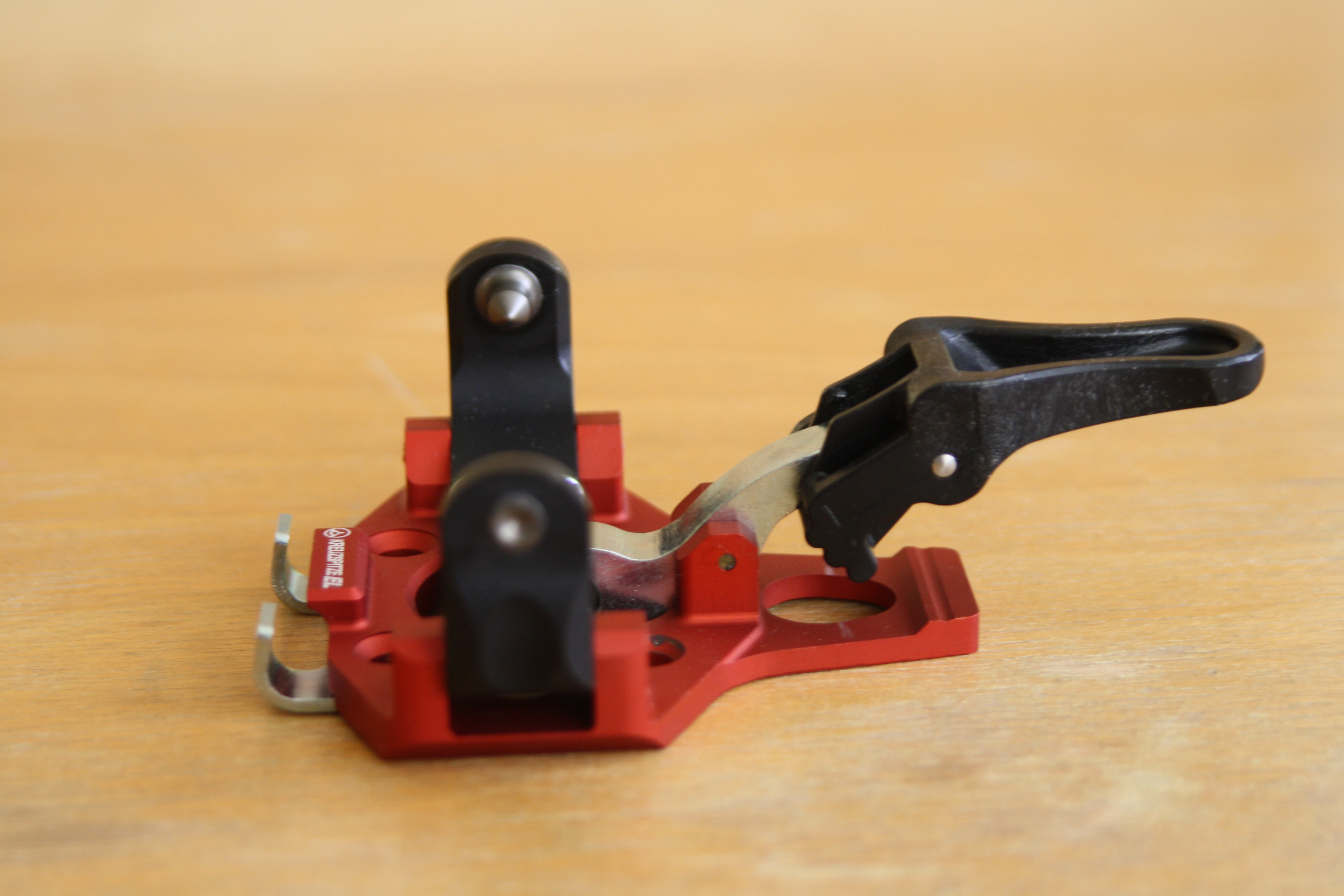 Samozrejmosťou je odnímateľná platnička na uchytenie haršajzní. V špičke viazania je pre ňu odspodku vybranie a je tam prichytená dvoma zo štyroch skrutiek, ktoré držia špičku viazania na lyži. Dôležitý je rozostup dier pre skrutky, na pätke rovnaký ako má Dynafit TLT Speed. Brzdy nie sú súčasťou viazania, ale dajú sa samozrejme dokúpiť. Rozsah dostupných doplnkov je ale väčší, čo je známa filozofia výrobcu.