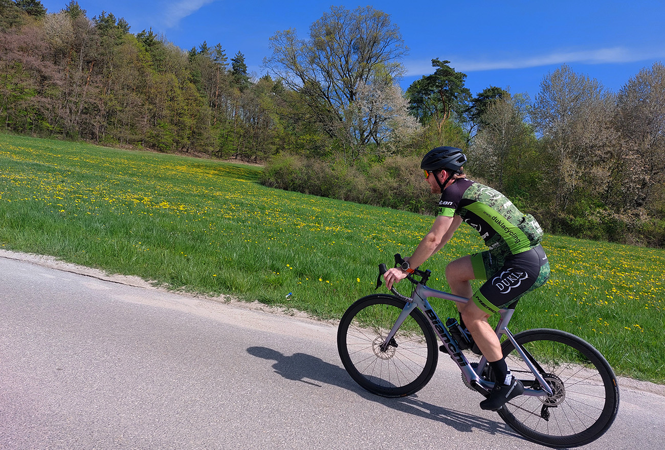 No a potom to začalo. Spolupáchateľ sa len škodoradostne škeril a vrtel si nohami svojich 34/34 či čo to tam má, ja som z predposledných síl lámal svojich desať otáčok za minútu a s penou u huby som sa snažil hľadať iné panorámy ako na jeseň: