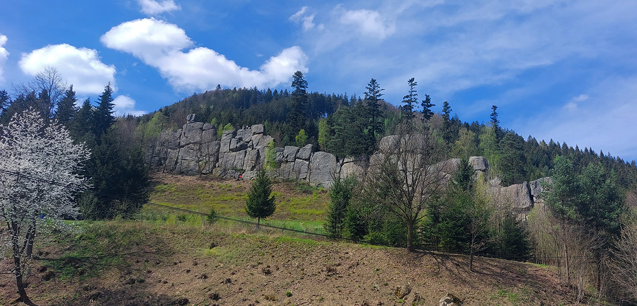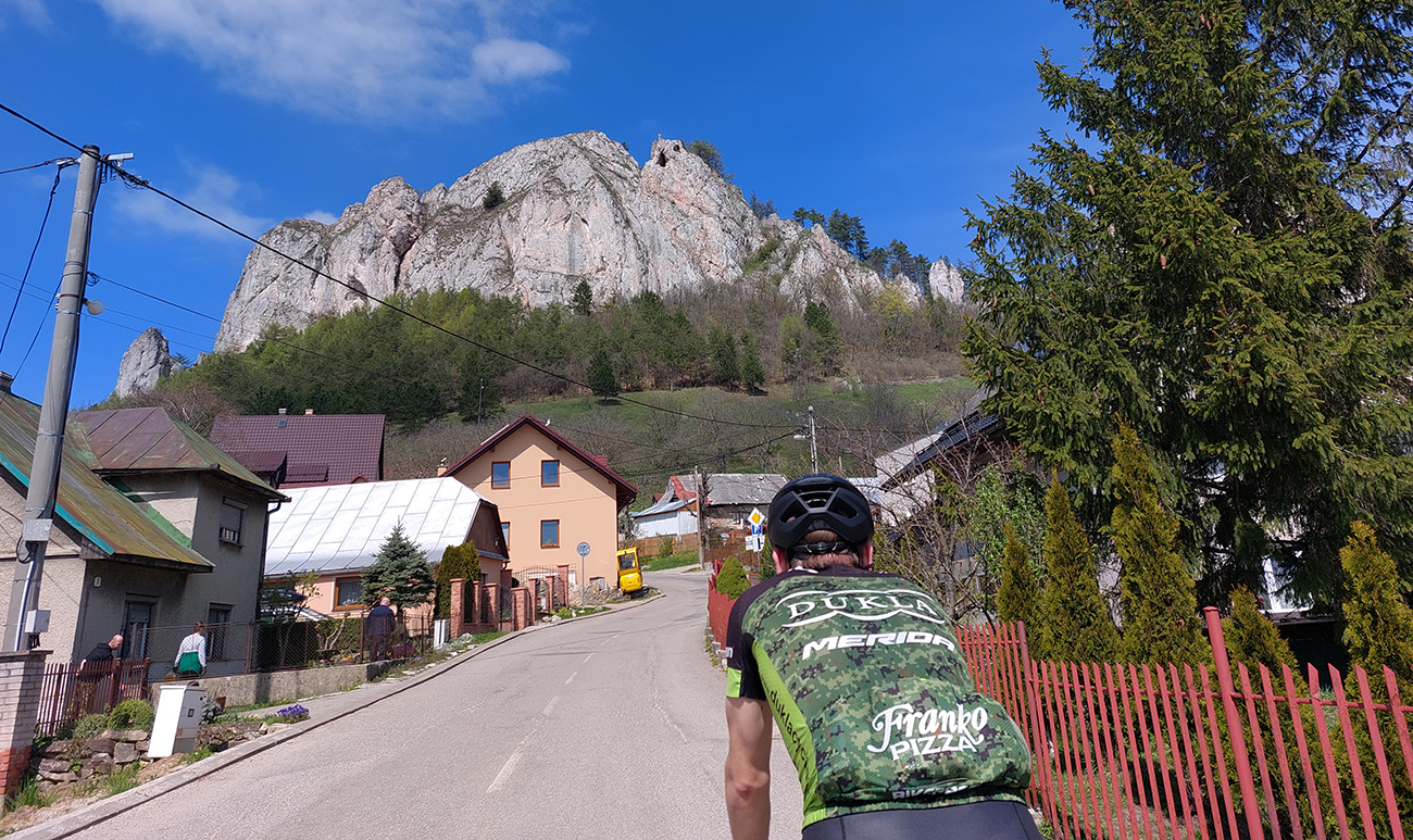 Tých pár kilákov hore do Podhradia je taká hojdačka: stále síce do kopca, ale raz miernejšie, raz prudšie. Zato krajina naokolo sa stále viac otvára do výhľadov a vpredu keď sa vystrčia známe skalné veže, je radosť sa potrápiť, aj keď chýbajú nohy alebo prevody.