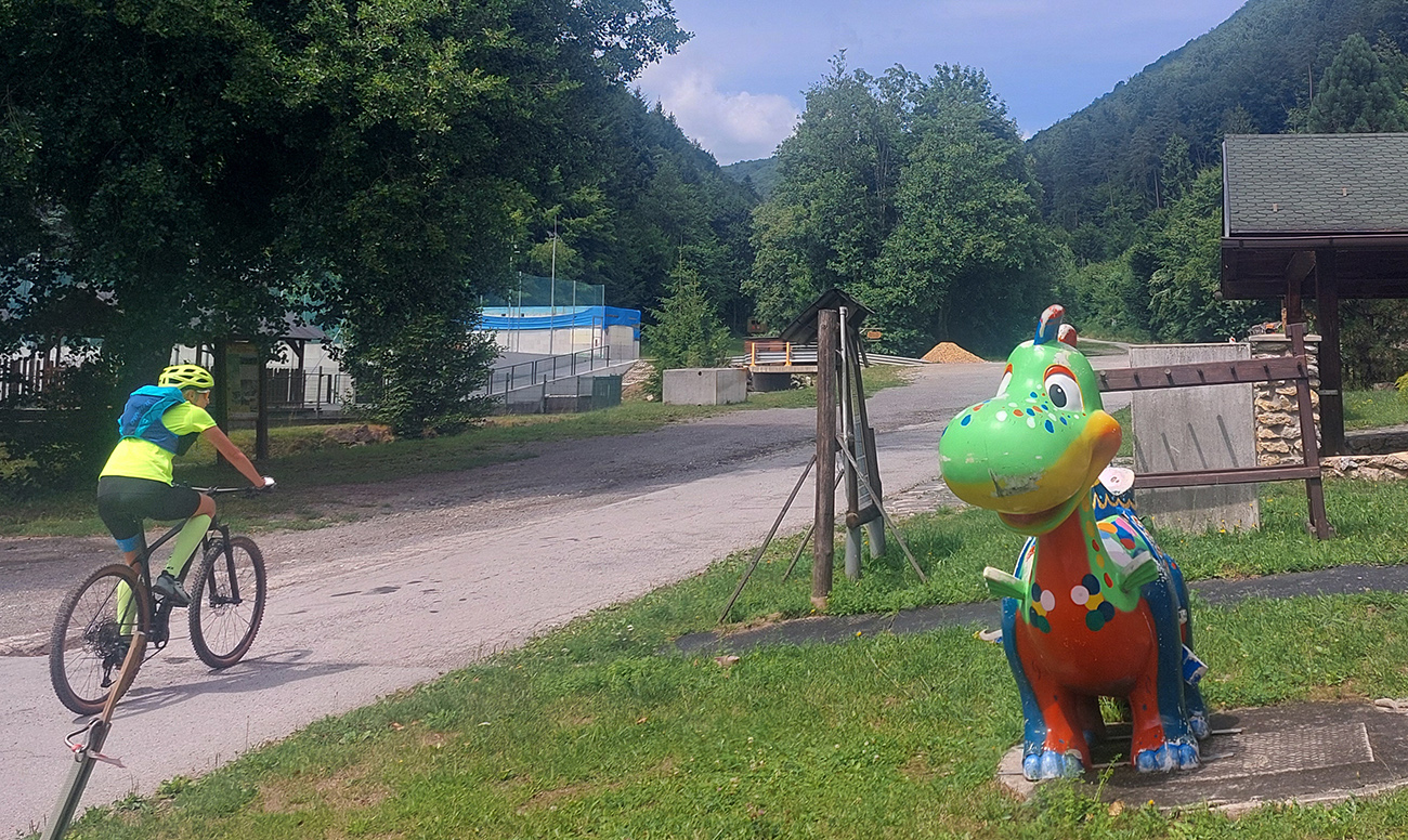 Dole v Pôlči kvôli ťažbe dreva na ceste trochu bordelu, ale nič strašné. Len pozor na papeky, ktoré radi skáču do kolies. Potom prudko doprava, ešte malý brdok cez horizont do Suchej Driekyne a švihom dole po makadame. Výhľady sa uzavreli s vjazdom do lesa: