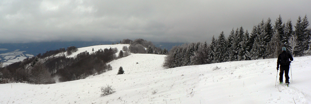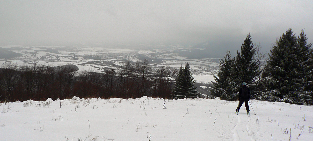Typické pre túto zimu – tretina januára a až teraz som sa prvý raz dostal na pásy. Mal to byť prieskum podmienok na hrebeni Veľkej Fatry, ale aktuálne to prestalo byť, už keď sme vyzúvali lyže - začalo liať ako z krhly. Teplota vystúpila poriadne do plusu a tých približne 30 – 40cm bolo už na druhý deň minulosťou. Predpoveď žiaľ vyšla, teplý front dorazil. Mraky už sedeli na kopcoch asi od 1000m vyššie a fučalo fest. Tak sme sa vybrali na hole nad Nolčovom na severe Veľkej Fatry, ktoré sú nižšie a dosť trávnaté, aby sa tam dalo pošmýkať aj v tejto snehovej biede. Víchricu dáko prežijeme, aj keď SHMU vydal výstrahu najvyššieho stupňa :-)