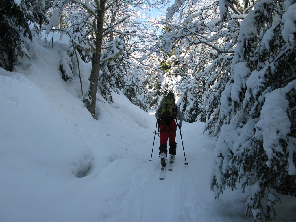 Po hodnej chvíli prepletania pomedzi stromy sa konečne dostávame na slnko. Snehu je všade "na mrte". Ťažko sa dá zažiť niečo krajšie. Na oblohe ani obláčik a my sa pomaličky blížime k nášmu cieľu.