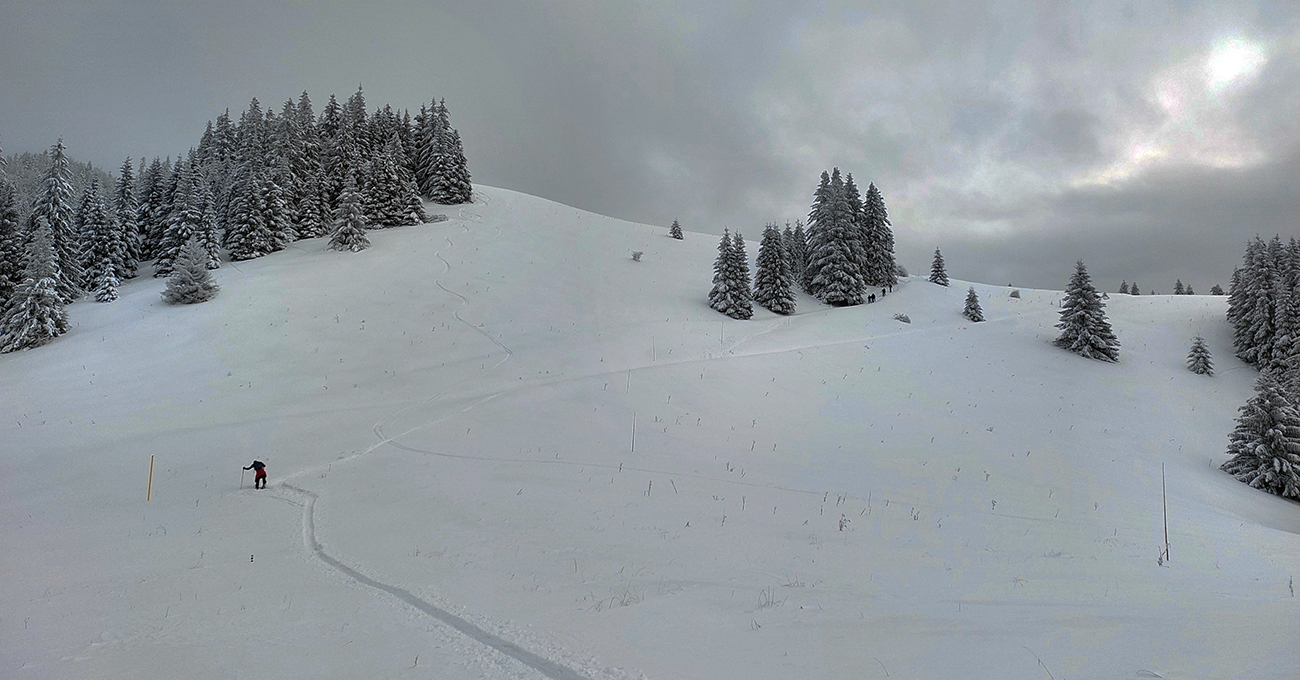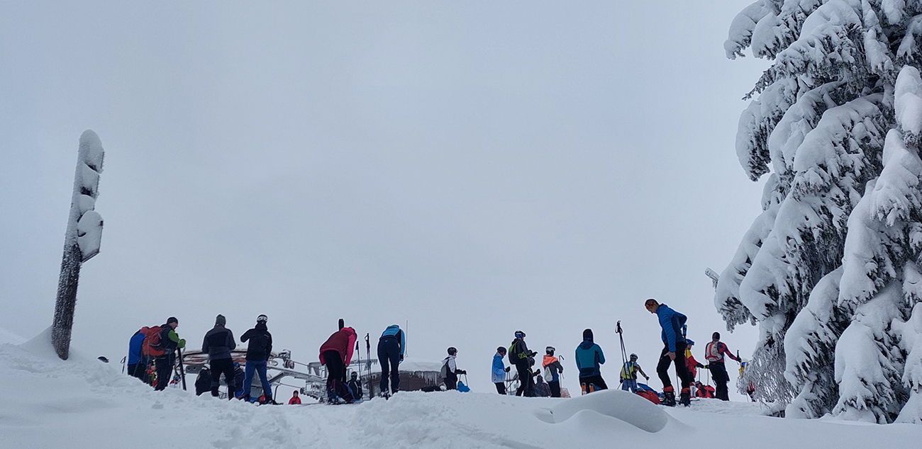 V tejto lavínovej štvorke bolo treba bezpečné miesta sobotných chlpatých radovánok voliť. Ale zase nie moc vysoko, lebo mraky, ani nie moc nízko, lebo tam furt snehu niet. Tak zas voľba padla na istotu – pasienky veľkofatranské. Pred týždňom sa na nich ešte mohli ovce pásť, teraz tam leží pol metra (aj viac) čerstvého, bieleho, bez základu samozrejme. Takto sa klimatická zmena prejavuje, ak by niekto ešte nevedel – čoraz väčšími extrémami.