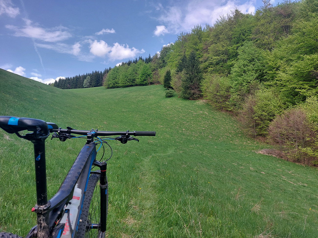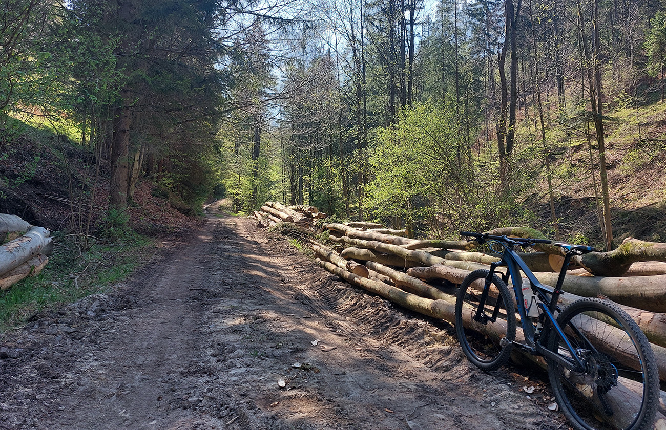 Traverz do Prašnického sedla a zjazd dole do Suchej doliny (asi šesť kilákov) už za odmenu boli – krásna, hladká šotolina, príjemne praskajúca pod kolesami. Okolo svieže jarné lesy, čistá rozkoš. Len krátky úsek pred Prašnickým sedlom prekvapil prehadzovačku, ako sa strmo dvihol z dlhého a mierneho klesania.
