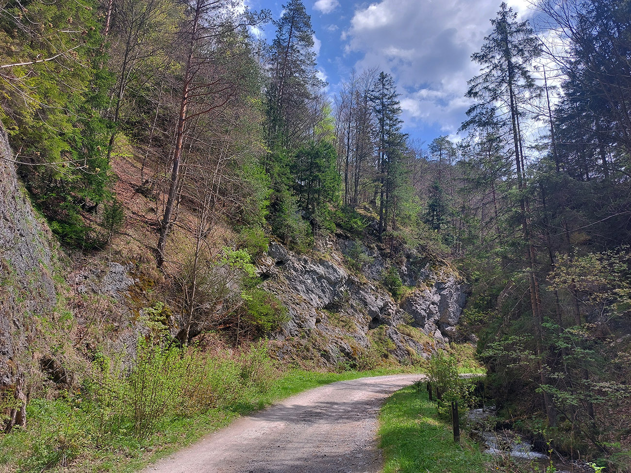Serpentíny parádne, skaly popri nich bombastické, lesy naokolo zachovalé, výhľady takmer žiadne. Iba jeden priehľad pomedzi stromy k Čiernemu kameň, ale aj k tomu sa treba zohnúť. Len na mnohých miestach je tá šotolina pod kolesami akási až moc „kyprá“. Asi ako po zime. Metricky ale len nejakých päť kilákov a druhý, teda Veľký Šturec, vybavený tiež:
