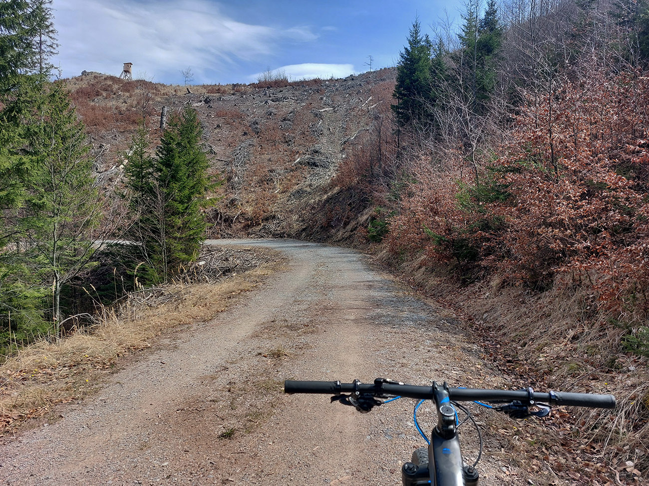 Asi 30-kilometrový okruh v Lúčanskej Malej Fatre, na turčianskej strane, okolo doliny so známym lyžiarskym strediskom. Tréningový preto, lebo chrtivý potenciál je tam vysoký, estetický o dosť nižší, miestami sa prepadá hlboko do mínusu. Najmä na severnom okraji doliny, kade som sa štveral hore. Ale pod kolesami pohodlná, zväčša rovná šotolina, samé lesné cesty, žiadne prekvapenia, aj gravel by sa miestami nudil. No héééj, aj výhľady sú – cez rúbaniská na rúbaniská. Aj hlboko do riedkych lesov vidno, lebo veľa tých ciest je surových, nových, ešte im okraje nestihli zarásť. Tak je to vhodné aj pre medveďofóbov. Čiernych kôpok sa tam na cestách vždy niekoľko nájde :-)