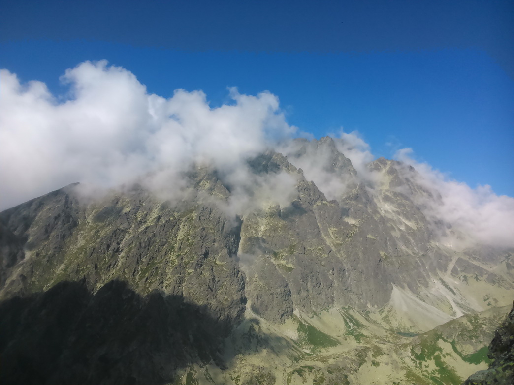 5:30 prichádzame na Tatranskú Polianku a vďaka dobrým kontaktom sme pred 6:00 na Sliezskom dome. Cestou k Večnému dažďu skoro bežíme a predbiehame vodcov s klientami. Po chvíli opúšťame chodník a bočíme doprava znateľným chodníčkom k Velickej stene.