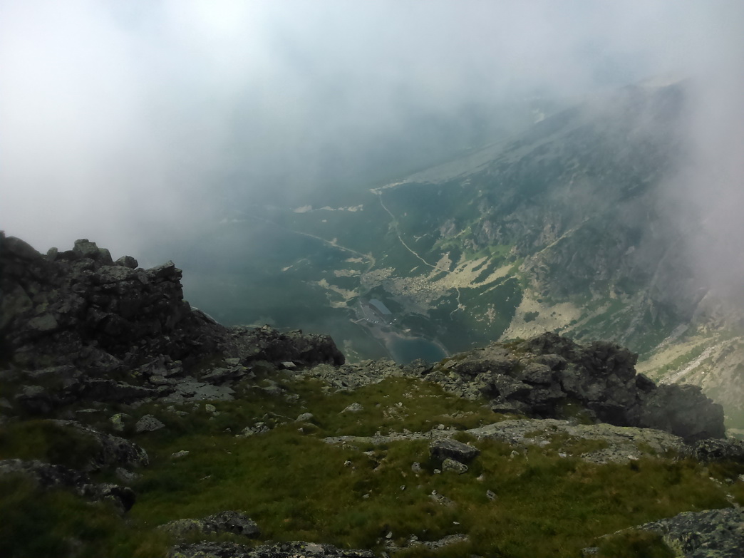 Orientácia v kotli je pomerne ľahká a ešte mokrým kotlíkom sme za chvíľu pri prvom zlatom nite,( tých bude dnes vďaka Tatarkovi viac). Sprievodca z tatry.nfo.sk opäť nesklamal, nit strieda borhák na štandoch a lezenie príjemne a rýchlo ubúda. 9:00 hlásim ,,Zruš!“ na poslednom štande s dvoma borhákmi a doberám spolulezca. Na vrchol je to už len jedná dĺžka v tráve, ktorú ideme súbežne. Krátka pauza a občerstvenie a ideme dole prekrásnou Granátovou lávkou, ktorá nás vypluje na chodník kúsok pod Sliezskym domom. 11:00 prichádzame na Sliezsky dom, takže Peťo stíha dnes aj biznis.
