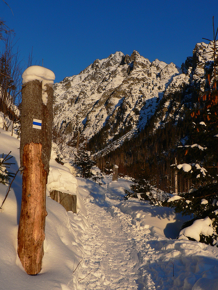 Po prepršaných sviatkoch, kadejakých kalamitách a šliapaní v sivote a mlieku to teda konečne raz vyšlo. Predpoveď hlásila azúro, aj keď trochu arktické, denný program hlásil cestu do KE na otočku, to bolo treba využiť, inak sa proste nedalo. Otočka v KE predvídavo naplánovaná na noc, takže už pred siedmou ráno som hrkotal a škrípal lyžami popri lanovke zo Smokovca. V Poprade -20, v Smokovci -16, ale bezvetrie. K tomu fialkové nebo, cestou na Hrebienok už nasvietené špičky štítov. Za chrbtom, na druhej strane kotliny, „rajské“ teplé farby východu slnka. K tomu pracovný pondelok kombinovaný s koronakrízou a „stanným právom“ - nikde ani nohy. Tatry pri peknom počasí bez ľudí??? Udalosť zázraku podobná. Počítal som aj so stopami, ktoré po podobne peknej nedeli budú naťahané určite všade tam, kam len budem chcieť, a aj keď porýľované to isto tiež bude dokonale, o lyžovačky mi nikdy nešlo, len sa dáko z kopca spustiť. Takže som čakal deň za odmenu, akých je málo. Aj taký vyšiel. Len toho snehu majú TA3 stále menej, ako by si zaslúžili.