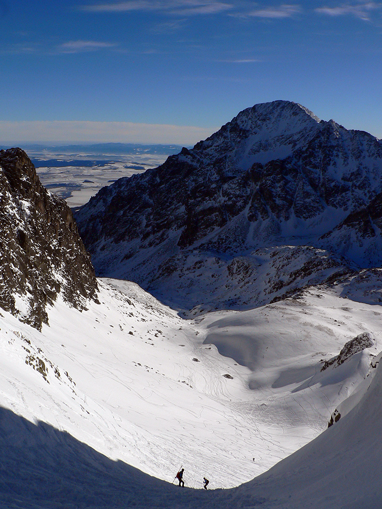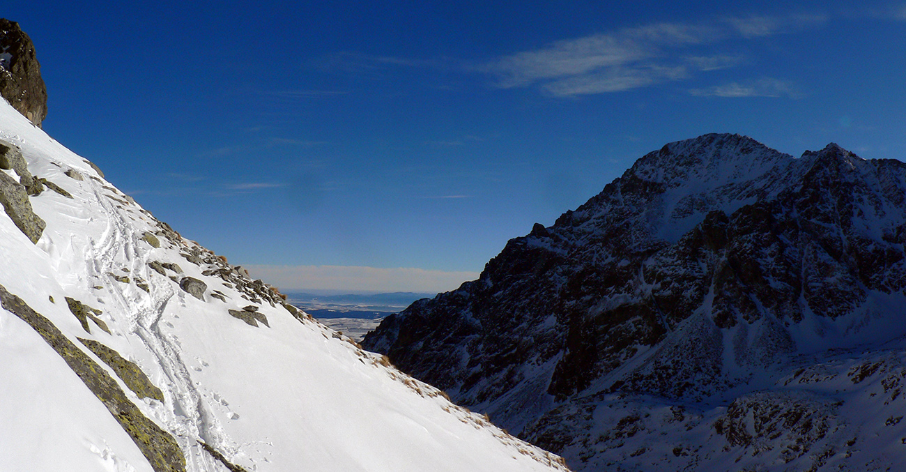 Cestou som trochu špekuloval čo podniknúť, ale nakoniec zvíťazil najjednoduchší variant – vezmem to pekne Veľkou studenou a jej klasiky zľava doprava, nech aj slnko využijem: Prielom, Svišťový štít, Závrat, Priečne sedlo? Ani stopu hádam nebude treba pretláčať, aj bezpečné to hádam bude... Na úvod za Hrebienkom len malá dilema kade ísť, ale zvolil som turistický chodník, že je panoramatickejší a Húpačky si nechám na odjazd. Pekné panorámy sa otvorili, aj jedovatý vetrík len v zúžených miestach doliny, aj stopy komfortné, len niekde už trochu moc vyleštené a v Bráne, v traverze bolo treba sem – tam lepšie lyžu zaseknúť do tvrdého.