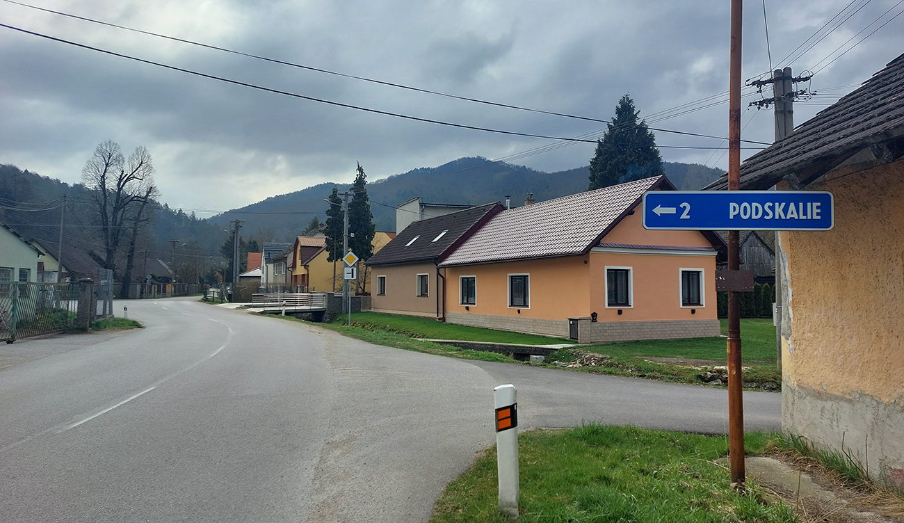 Za Visolajmi odbočka do doliny Pružinky a v Tŕstí znovu doprava, tam to malo začať. Modrá cyklistická a zelená turistická, ale najmä asfaltová cesta popri Strážovskom potoku (a na začiatku aj popri poriadnej obore). Pri sanácii nebezpečného brala pod Mojtínom v r. 2019 súžila ako obchádzka, tak som dúfal... A dúfal som dobre, lebo síce v dedine povrch nič moc, ale hneď za ňou preukrutne komfortný asfalt. Naľavo sa pásli za plotom dáke kozorožce, napravo trčala Ostrá Malenica ako dominanta nad miestnou krajinou, dooobre to začínalo!