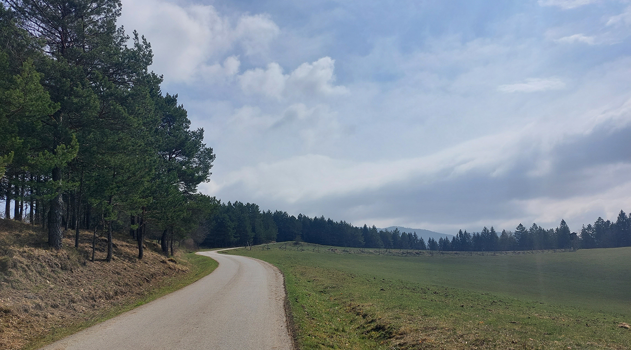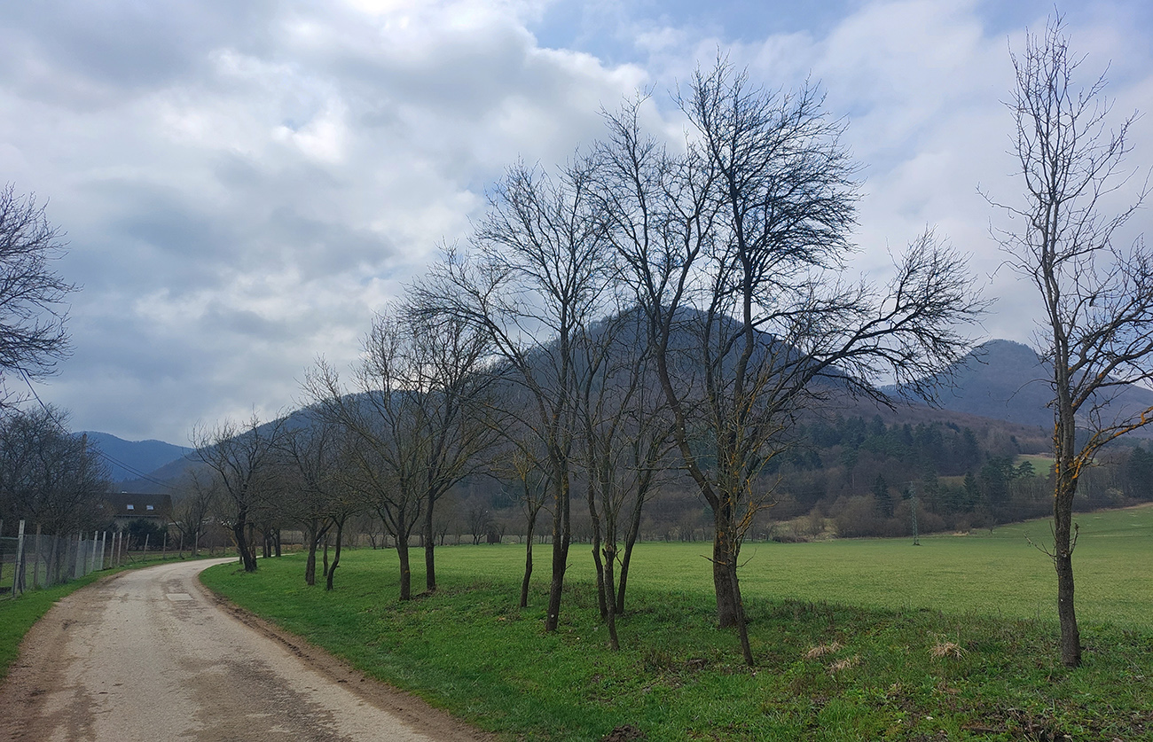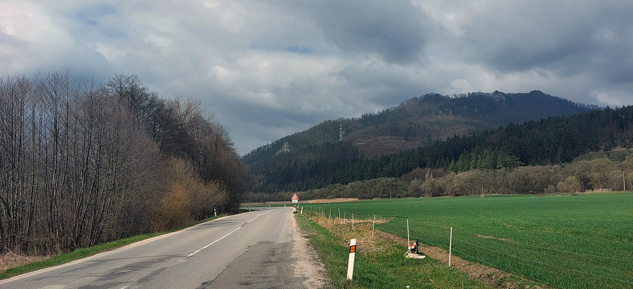 Veľkonočný pondelok začal okrem ujúkania a oblievania krásnym, polojasným, ale chladným ránom, tak prvú hodinku som zahrieval motory po rovinatých, dobrých a zatiaľ ešte príjemne tichých cestách: PB – Nosice – PU – Beluša – Visolaje. V tieňoch ešte trochu prsty mrzli, inak super. Potom sa síce zatiahlo a krajina trochu osivela, ale aspoň ma v stúpaniach nepieklo slnko. Teplota taký jarný ideál.