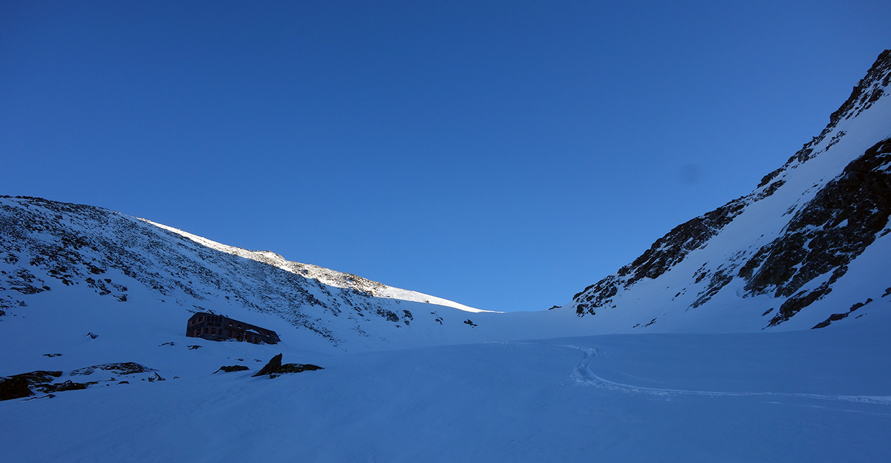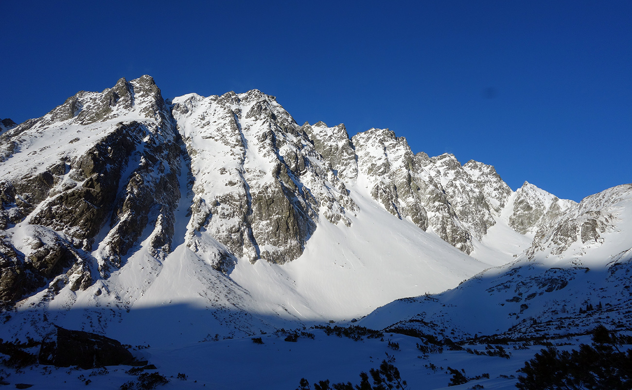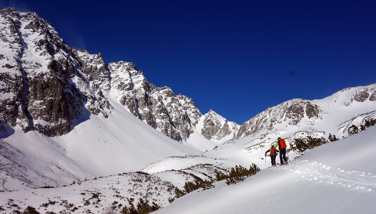 Sobota začína skvostne (azúro a takmer bezvetrie) a užívam si lyžovačku vyľudnenou dolinou. Rampa bezpečne zjazdná a od Žabích plies skvelá lyžovačka ufúkaným prašanom až k hotelu. Tentokrát bez občerstvenia, ale s vidinou výživného dňa nastavujem testovacie K2 Wayback 96-ky od Sportrysy na moje F1-ky. Vyrážame s Peťom Lichým a Robom Turjaníkom dolinou Mengusovskou a nechávame sa viesť čerstvou stopou až do Satanej dolinky. Pri Hincovom plese odbočujeme do Vyšného Kôprovského sedla. Chodník je tradične vyfúkaný až na kamenný podklad. Na chvíľu teda nasadzujeme mačky a lyže idú na batoh. V sedle výmena a moji 50+ parťáci neúnavne diktujú tempo a ťahajú stopu panenským svahom. V krásnom počasí dorazíme na snehový predvrchol. Vieme, čo nás čaká. Nenormálna lyžovačka v jemne sfúknutom púdri nemá chybu a doprajeme si dojazd až pod severku Štrbského štítu.