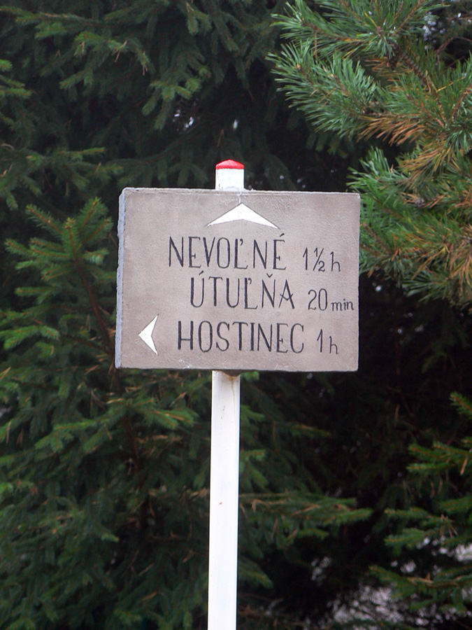 Hneď po vynorení na lúky Kremnického štósu je tu prvá zachádzka - šípka miestneho značenia posiela človeka doprava dole do Nevoľného, ale až do dediny nejdem. Lebo asi po pol kilometri svieti napravo pri okraji lesa ďalšia tabuľa a za ňou je skrytá „Skala lásky“ - bralo s perfektnou vyhliadkou na Kremnicu a kopce okolo nej. Oplatí sa!