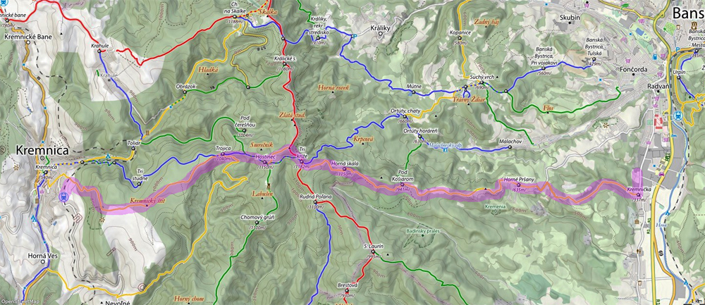 ...cez Velestúr a sedlo Tri kríže v Kremnických vrchoch. Lebo táto Kremnička je časťou Banskej Bystrice, keby niekto nevedel. A ak by niekto chcel vedieť viac, tak je to taká nenáročná prechádzka, čo sa týka stúpania (najmä v tomto smere) aj času (takých 6-7 hodín). Skoro stále po žltej. Cestou je veľa zaujímavých miest, kde sa oplatí postáť, či už kvôli ich histórii alebo kvôli výhľadom. A za niektorými sa oplatí aj trochu odbočiť, tak sa mi to nakoniec natiahlo asi na 8 hodín.
