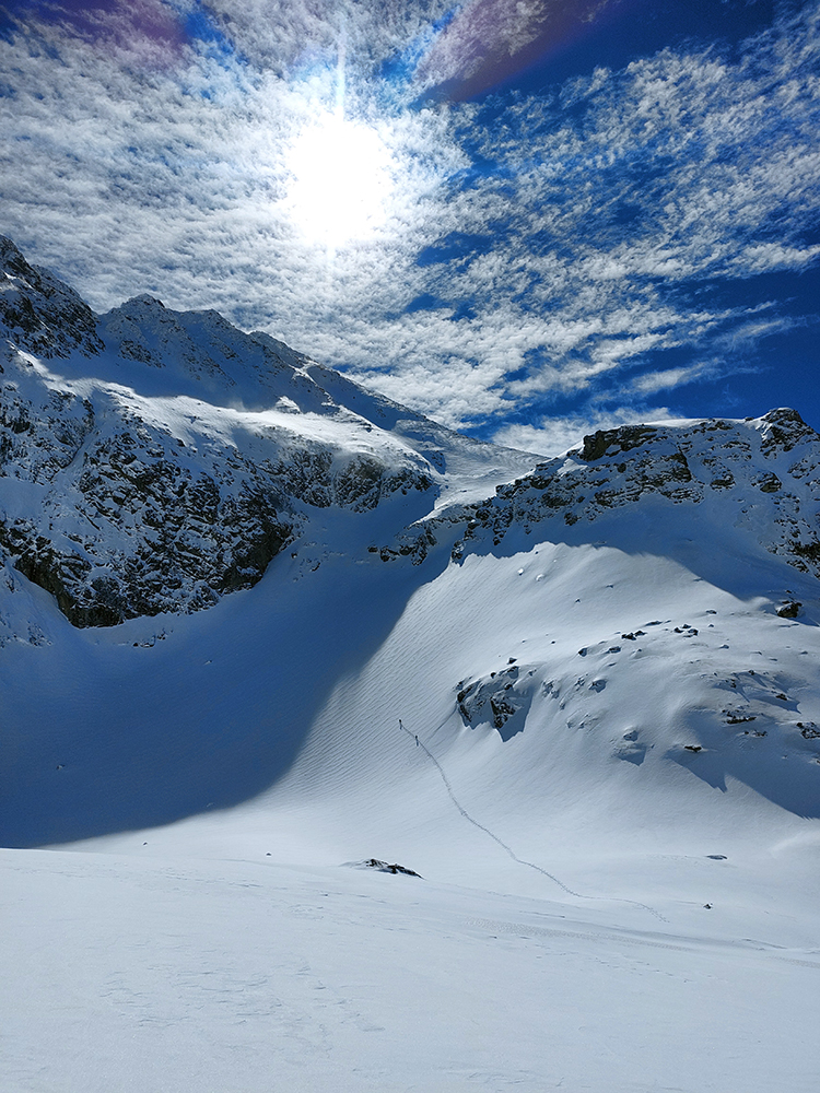 Tak sa zrodil opatrný plán: cez Zlomiská a Východnú Železnú bránu nakuknúť do severov, do závetria. Zlyžovať Gerlachovské spády, podtraverzovať Pustú stráž a z Ťažkej doliny sa vynoriť v sedle Váha. Že zámer nevyšiel nevadí, aj tak dobre bolo. Ale po poriadku, takto bolo: