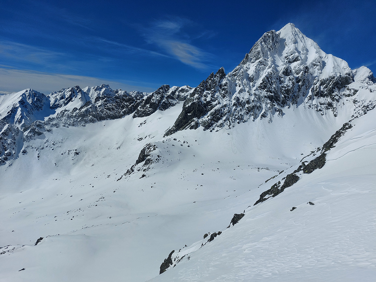 Veľkonočné horúčavy sa valili, no piatok mal byť ešte teplotne použiteľný. Nočný front čosi máličko prisnežil, zato na Popradskom už ráno nadnulovo a na hrebeňoch víchrica od západu. Tepla cez deň pribúdalo a z víchrice neubúdalo, zato dopoludnia azúro, že až plech!