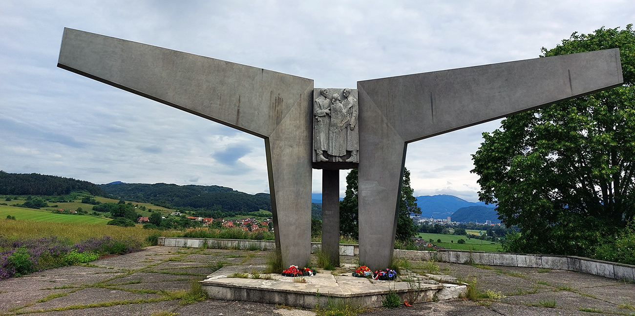 Potom už to odsýpalo rýchlo, s tým vetrom do chrbta: Kremnička a ťažká história vyčíňania fašistov za vojny, Rakytovce a možnosť obabrať to do Vlkanovej po rovinke. Ale išiel som radšej cez kopec do Badína. Lebo tam je pri ďalšom vojnovom pamätníku pekný výhľad nazad na Bystricu, aj do celej kotliny s dominantou Poľany na východe.