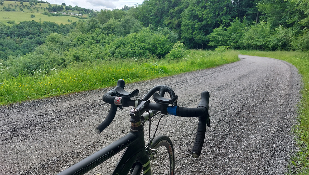 Pred Mičinou doprava a v podstate prvý dlhší kopec, ale nie prudký, skôr taký „hákový“. Bidón stále plný, tak minerálkou som pohrdol, zato ale aj tu ma potešil nový koberec, potiahnutý až do Čerína. Konečne po sto rokoch cesta už nikoho na obe strany z kopca nevyhrká. Starý, ale pekne udržovaný, biely čerínsky kostolík svietil, ako vždy, do diaľky.