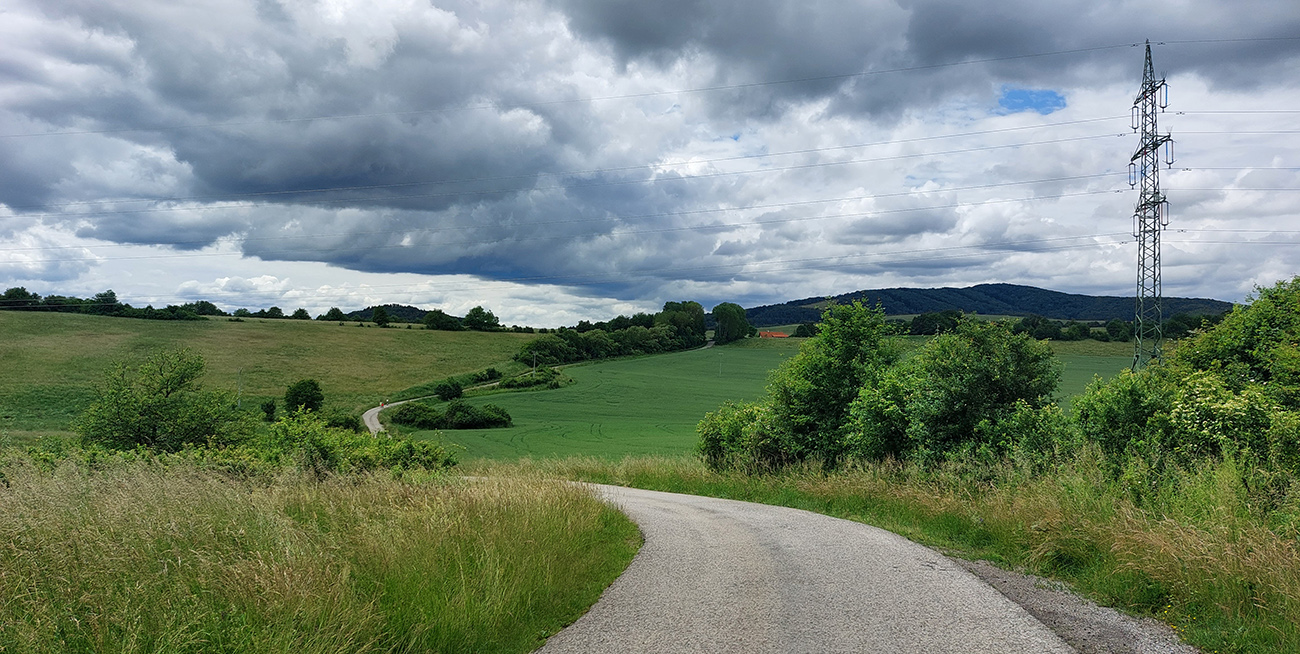 Vo Veľkej Lúke začína práve tá pekná krajinka – cesta sa jemne vlní pomedzi pahorky okolo potoka Lukavica. V rovnomennej dedine žila spisovateľka Hana Ponická. Túto cestu mám pod kolesami rád, a ešte viac odvtedy, čo konečne opravili jej povrch.