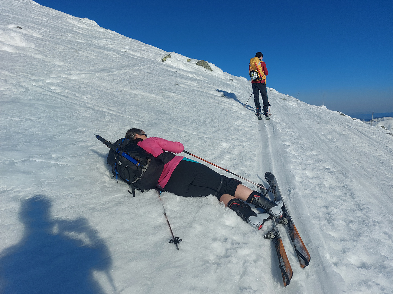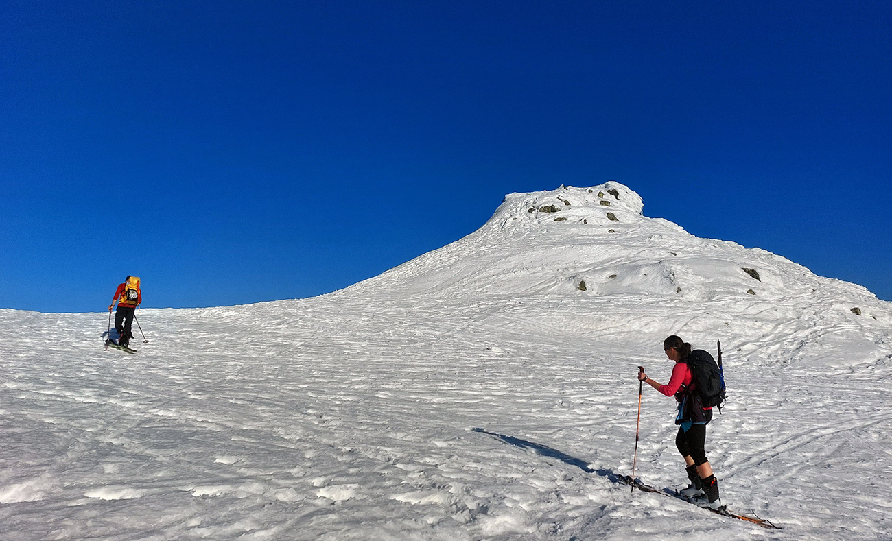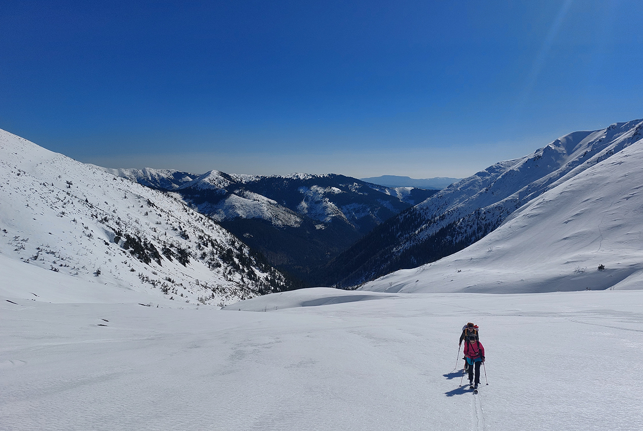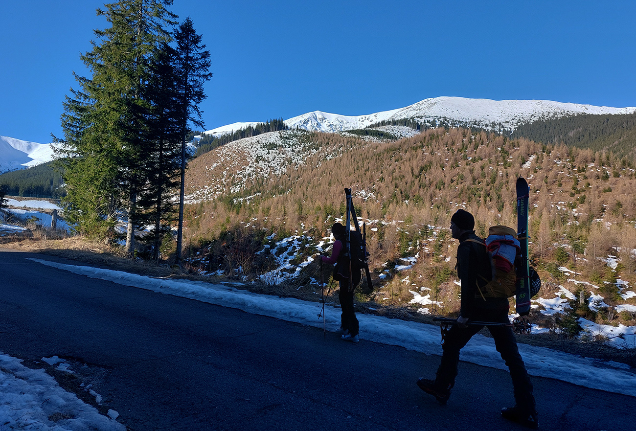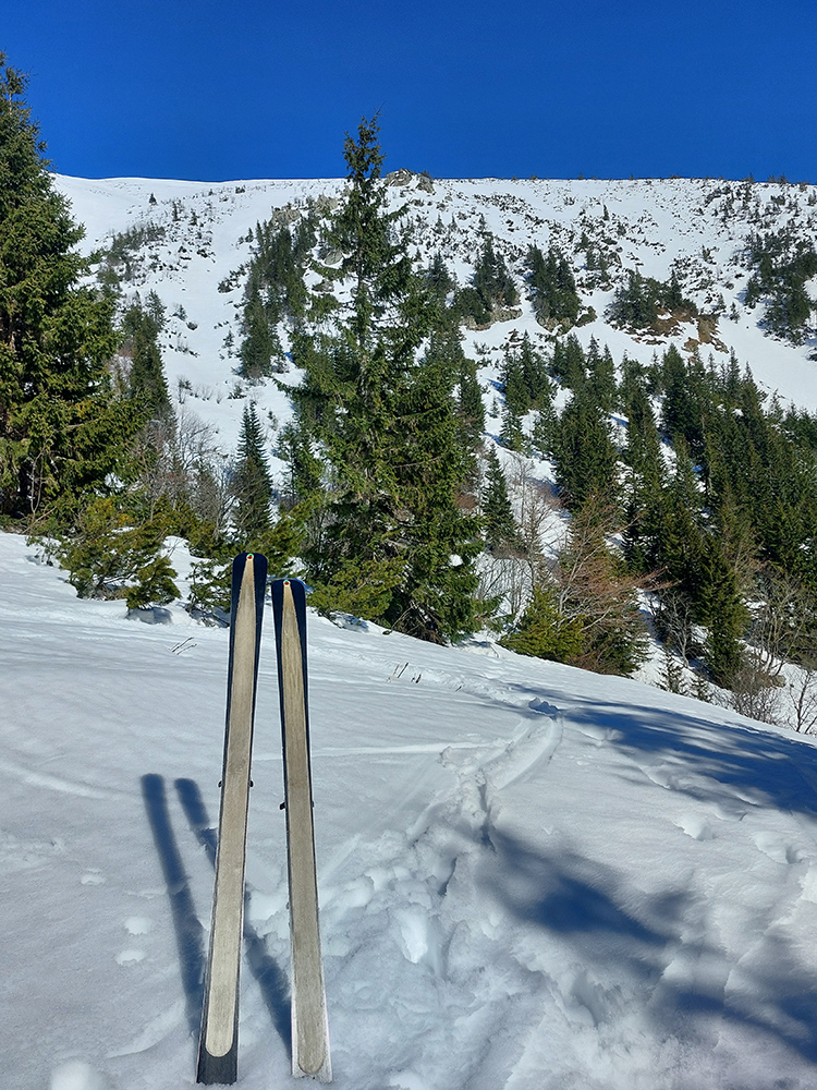 Ešte sme vyťapkali na Poľanu a nažhavení na jarné firny sme to odtiaľ stočili priamo dole po pláňach, niekam až tesne nad Vajskovský vodopád. Firny exkluzívne – na pevnom podklade natopená taká akurátna vrstvička, vôbec sa to ani v nižších polohách neborilo. Pre veľký úspech sme si to dali aj druhý raz, to už ale slnko dávalo poriadne cítiť svoju silu.