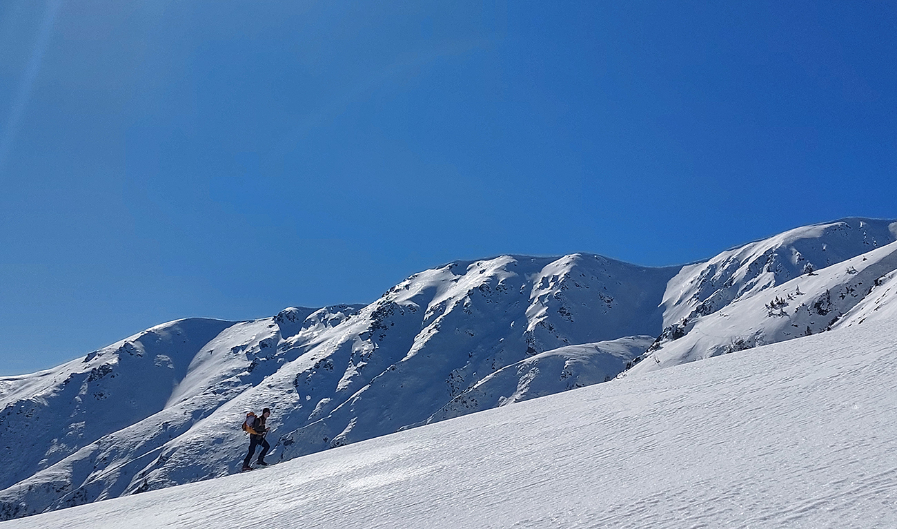 Sobota, siedmy marec, vyrazili sme do mierneho mrazíku z parkoviska P1 v Jasnej, smer Sedlo Poľany. Obloha gýčovito čistá, očakávaný úpek na južných svahoch. Severy vraj v top podmienke, uvidíme cestou hore. Plán bol okúsiť a zlyžovať takto zrána aspoň jeden juh niekde pod Kotliskami, potom pred páľavou utiecť do Derešských kotlov. Nakoniec to bolo mierne inak, ale nevadilo, aj keď nás mierne upieklo, poniektorých aj celkom na mäkko. A 2000 výškových je vraj celom dosť na takú prechádzku – no čo ja viem? Každopádne podobný nápad, ako sa dosať na hrebeň, malo v rovnakom čase doooosť veľa ľudí, ani sme sa nedivili. Lepšie ako po zjazdovkách. Keď sme potom popoludní po záverečnej zbehli dole, COROSy ukázali toto: